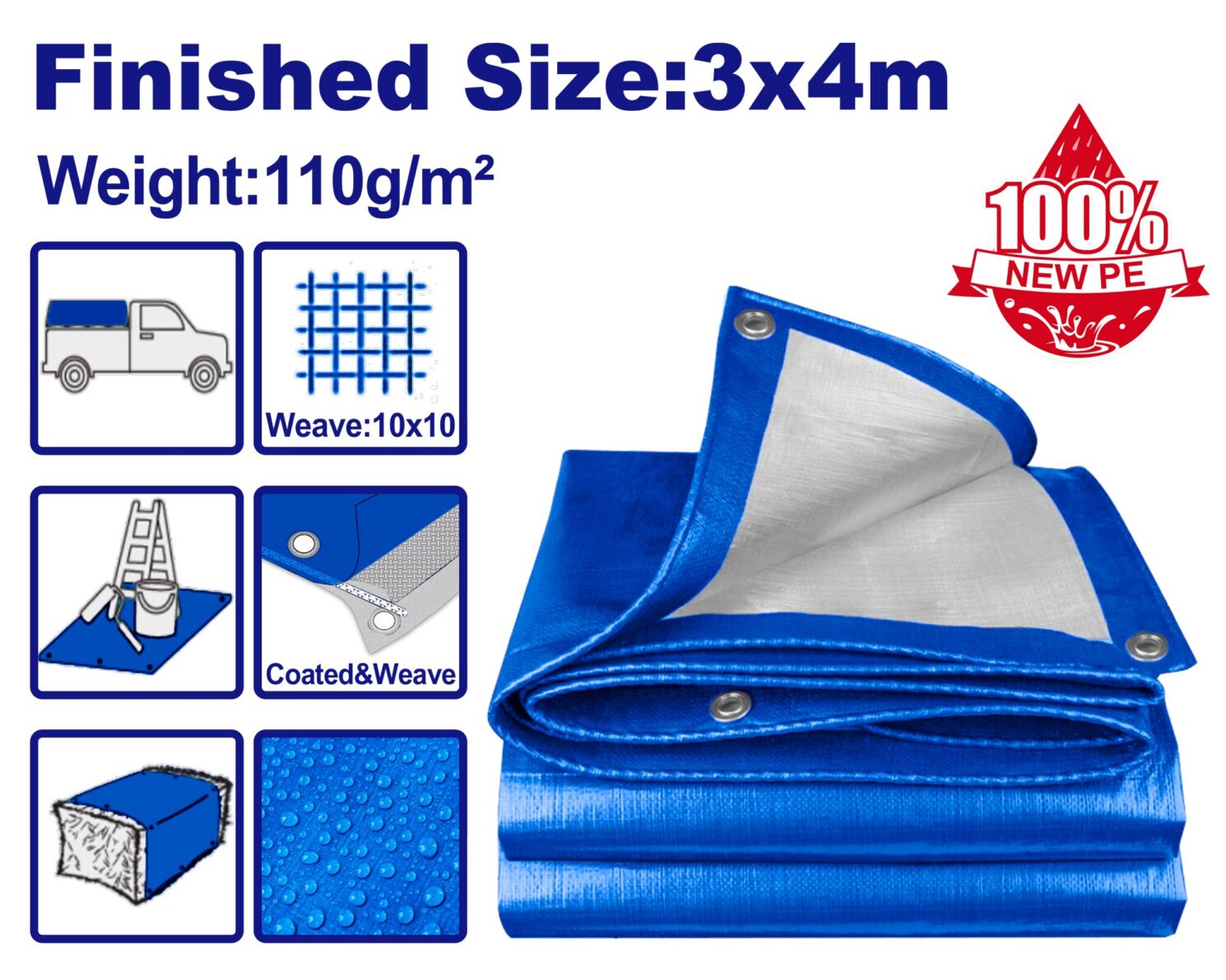 Lona Cobertora Con Ojales Alum 3X4Mt Poliet Mallad cantidad