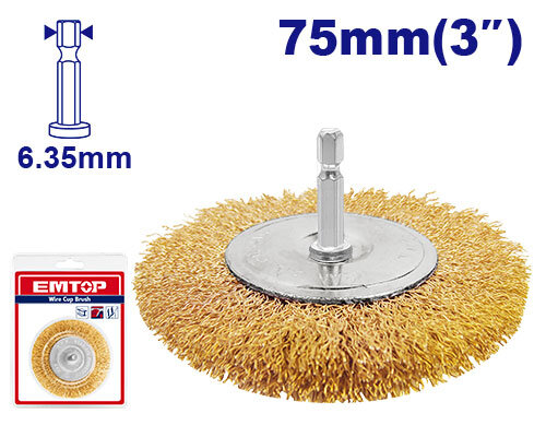 Cepillo circular plano 75mm con perno 1/4 EMTOP