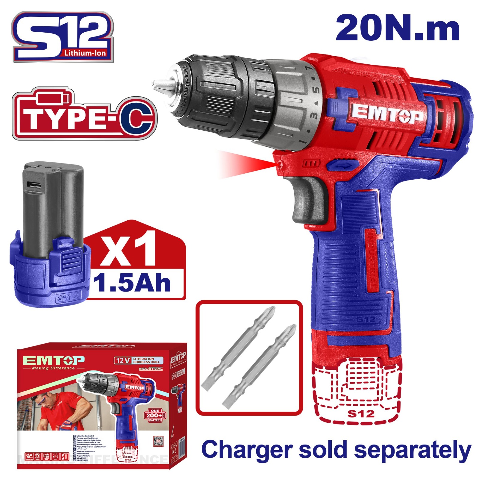 Taladro Atornillador 10mm 20nm Bat,12v con cargador y bateria